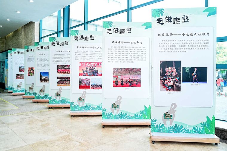 除以上外,昆明市图书馆以“走进磨憨”国门文化概念展为题,将磨憨风情融入阅读空间,打造了集文化展陈、沉浸自习、跨界互动于一体的特色阅读盛宴。在芭蕉叶的指引下,读者可以静享雨林纱幔下的诗意阅读,亲手触摸傣陶、傣锦中的文明密码,诚邀市民读者在书香、非遗与科技的碰撞中,重拾阅读的浪漫与惊奇。