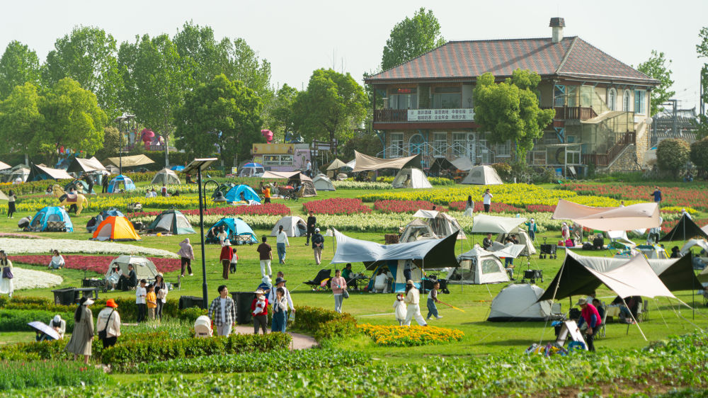 游客在花博汇露营。新华社记者 熊翔鹤 摄