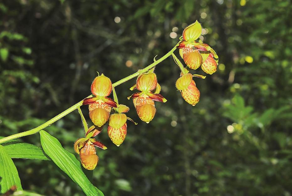 跋山涉水中,他有了许多关键发现。例如:2022年4月,在龙陵深山溪流边,他发现亚洲唯一生活在亚热带的杓兰属植物——暖地杓兰。为追踪其花期,他10多次往返原生地,记录从叶片萌发到种子成熟的完整周期。双凸铠兰最先在婆罗洲发现,后来首次在龙陵发现,属于中国新纪录。文献记载“瑞丽夹叶盾柄兰”在国外3月开花,而保山种群花期实为10月至11月。