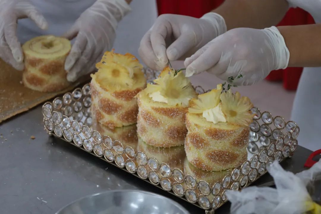 活动现场,缅籍厨师们身着整洁的厨师服,在德宏职业学院专业教师的指导下,认真学习菠萝香妃蛋糕和云腿月饼的制作技艺。称量材料、揉面、压皮、包裹馅料、印模成型,缅籍厨师们用手机仔细记录制作步骤,每一个动作都小心翼翼,仿佛在进行一场关于美食的艺术创作。