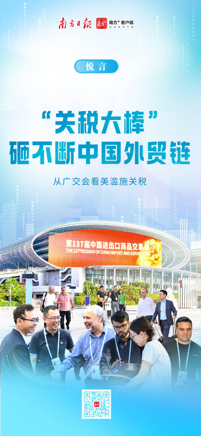 近年来,逆全球化思潮抬头,单边主义、保护主义明显上升,严重干扰国际经贸合作。当美国大搞“脱钩断裂”“小院高墙”之时,中国却在不断修炼内核、扩大开放,以中国新发展为世界提供新机遇。在美国滥施关税的背景下,本届广交会以“开放共赢未来”的姿态破浪前行,展览总面积155万平方米,展位总数约7.4万个,参展企业约3.1万家……各国参展商、采购商、消费者对广交会、对中国产品、对中国市场投下“信心票”,用行动证明“关税大棒”砸不断中国外贸链,世界各国人民对美好生活的向往和对产品物美价优的追求不会改变,经济全球化的大势不会改变。