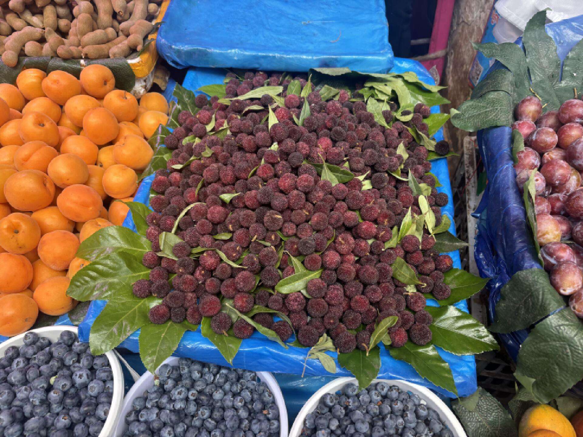 在昆明水果市场,水果商们售卖的杨梅主要以石屏杨梅和富民杨梅为主。受独特地理气候条件影响,石屏杨梅的成熟时间早于富民杨梅。