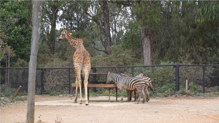 上午9 点,长颈鹿家族率先开启了这场“通勤大戏”。它们身姿优雅,从舒适的宿舍踱步而出。为了保障动物与游客的安全,园区的“长颈鹿通道” 是它们的专属通勤路线,抵达目的地后,它们便惬意地享用“早餐”,一边品尝,一边悠闲散步,开始一天的 “工作”。 与它们共享 “ 办公区域 ” 的斑马,此刻也踏着黑白相间的 “ 节奏 ” 而来,奔赴自己的 “ 岗位 ” 。