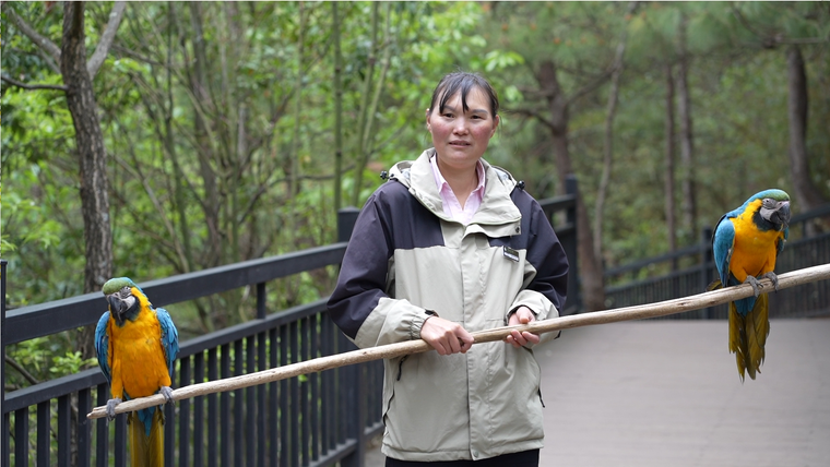 鹦鹉家族的“通勤”方式十分独特,每天早晨,保育员准时在鹦鹉的宿舍门口接它们“上杆”,一群“话痨”,叽叽喳喳地赶到工位,立即进入“工作”状态。