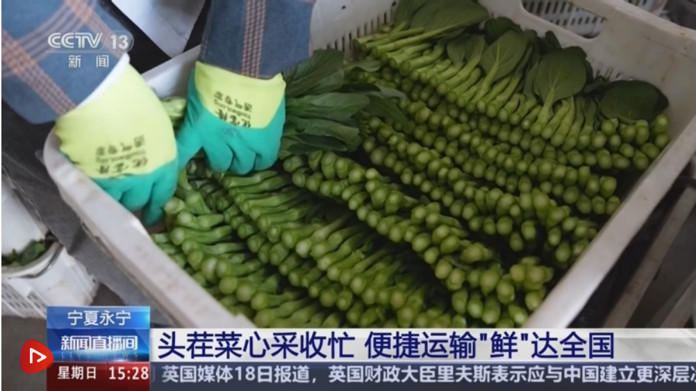 宁夏土地肥沃、引黄灌溉便利,加之日照充足、昼夜温差大,十分适宜冷凉蔬菜种植。宁夏菜心口感柔嫩、风味独特,深受市场喜爱。头茬采收的宁夏菜心主要销往广东、上海等地市场,通过冷链运输,48小时内就能跨越南北端上餐桌。