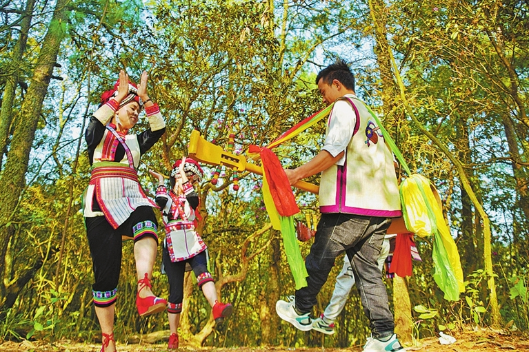 彝家阿细人跳起热情、奔放的“阿细跳月”