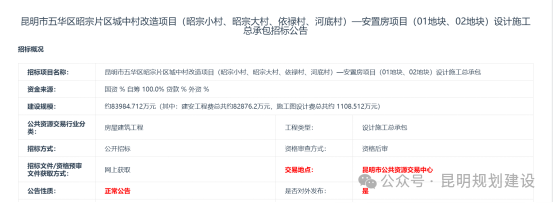 近日,昆明市公共资源交易平台发布“昆明市五华区昭宗片区城中村改造项目(昭宗小村、昭宗大村、依禄村、河底村)——安置房项目(01地块、02地块)设计施工总承包招标公告”,标志着该项目在推进过程中迈出实质性的一步。