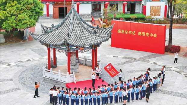 4月22日,昆明市春城小学教育集团联合宁洱县民族团结实验小学60余名师生齐聚民族团结誓词碑,共读雷锋日记、共绘雷锋画像。记者 高吴双 摄