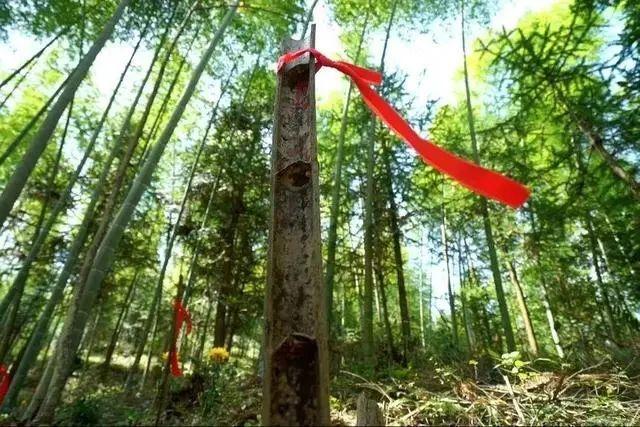 三块青砖,一个编号,一根红飘带,标记着一座红军墓。没有姓名,没有墓碑,剖开的半截竹竿上用红漆标记上一个编号,就是墓地的标识。