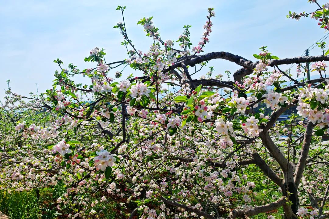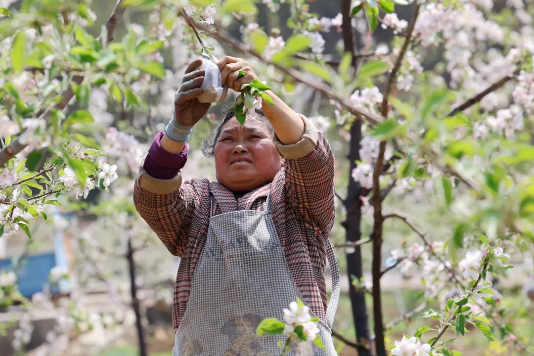 在文屏街道安阁村成片的苹果园,一簇簇、一朵朵白里透粉的苹果花开满枝头。果农李太强正在给自家的果树进行疏花、压枝管护。“今年气候适宜,苹果花开得好,我家种了200多棵苹果树,有望带来10万元的经济收入。”李太强说,三分种植、七分管护,果树疏花、授粉是春季苹果管理的重要环节,对提高坐果率、增强树势、增大果实具有重要作用。