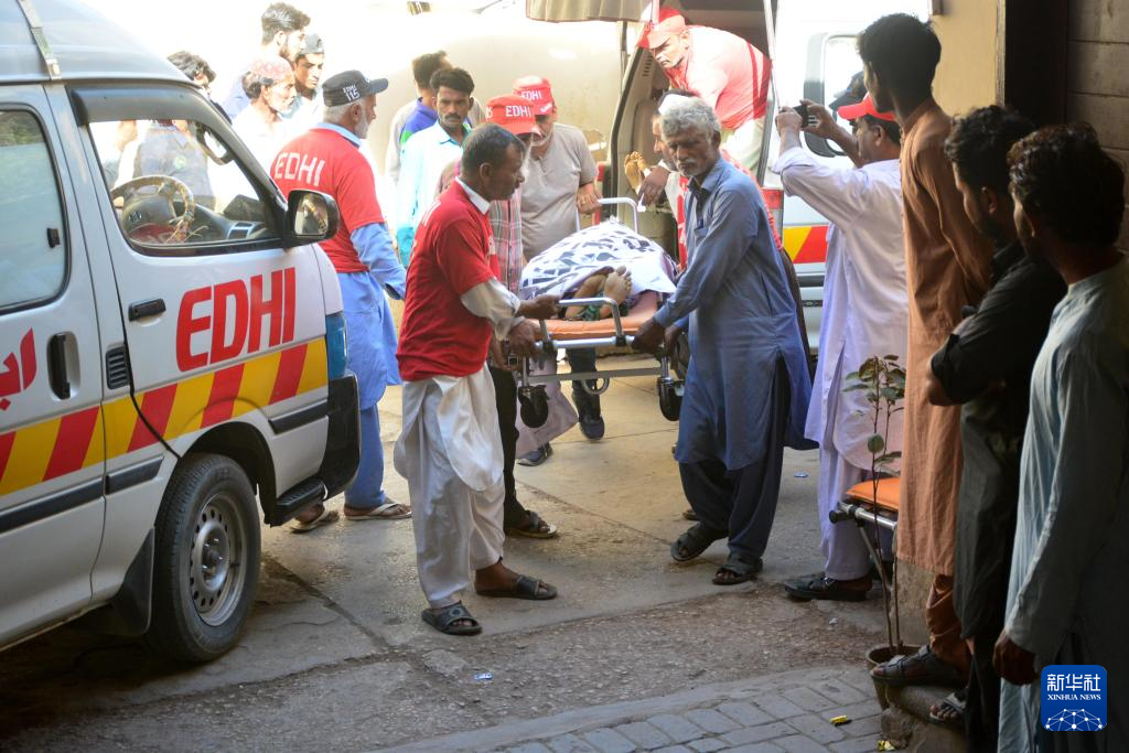 4月22日,在巴基斯坦南部信德省贾姆肖罗地区,救援人员将一名交通事故中遇难者的遗体送到医院。新华社发