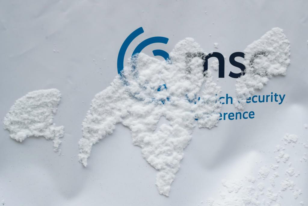 这是2月16日在德国慕尼黑拍摄的被积雪覆盖的慕安会标识。新华社记者张帆摄