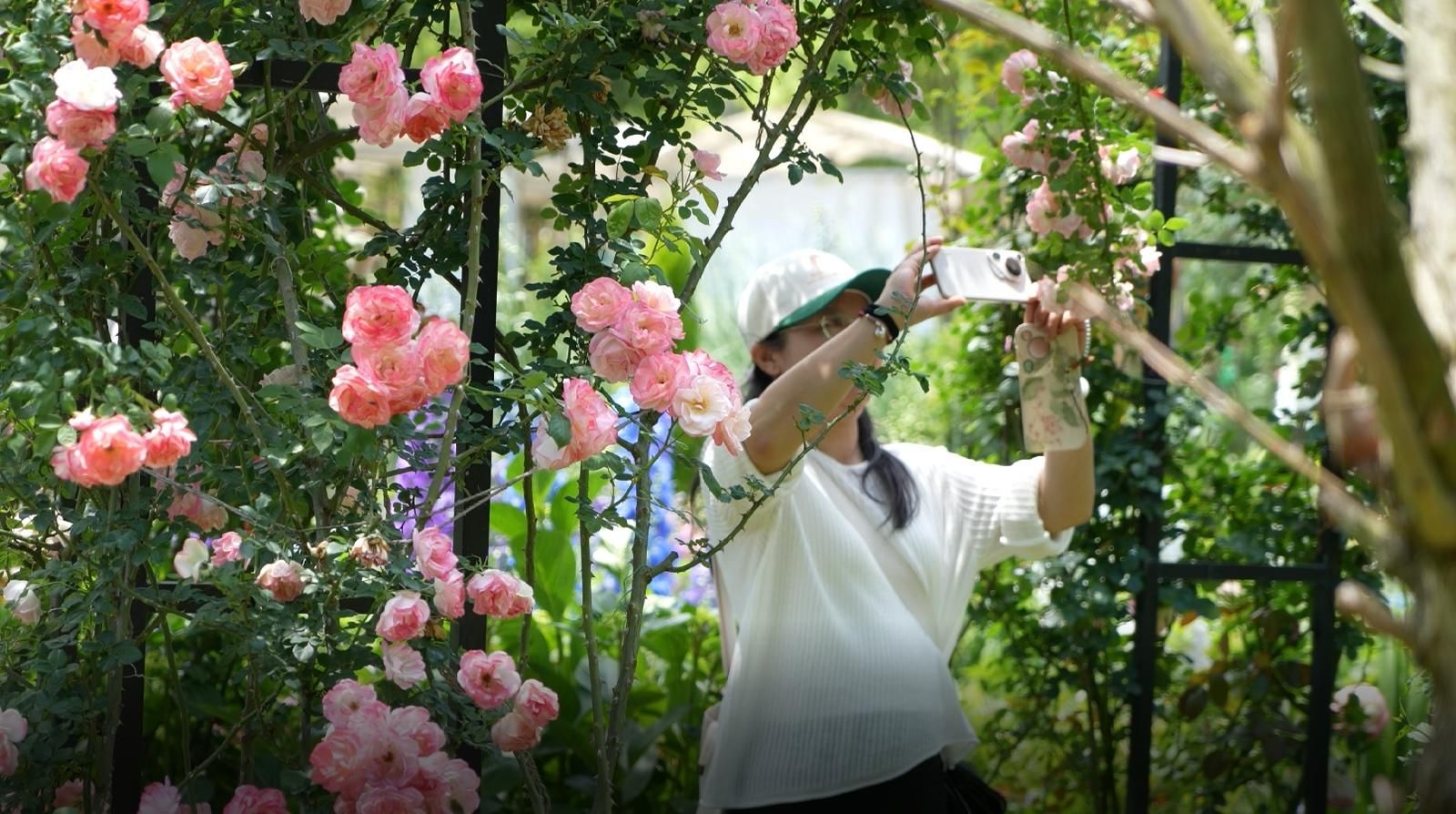 游客韩女士:“来到里面感觉太美好了,我自己也比较喜欢花,家里也种了很多,但是开得没有这里的好,来到里面感觉太美好了,像和春天有个约会一样。”