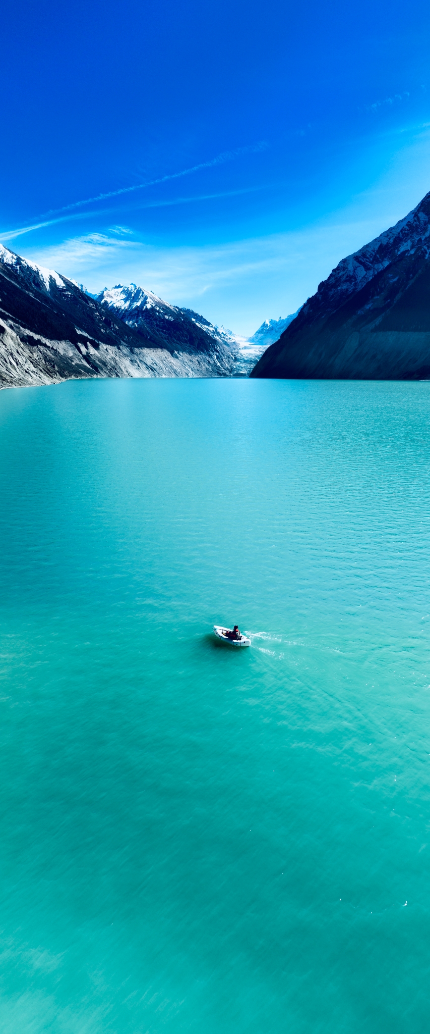 在蓝天白云的映照下,连接至祥格拉山脚的冰川晶莹剔透;贡嘎冰洞犹如一颗巨大的蓝宝石镶嵌在雪山,给来往游客巨大的视觉震撼。