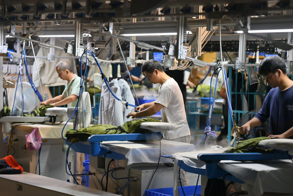 工人在广西北流一服装生产企业生产线上作业(2023年11月30日摄)。新华社记者 黄孝邦 摄