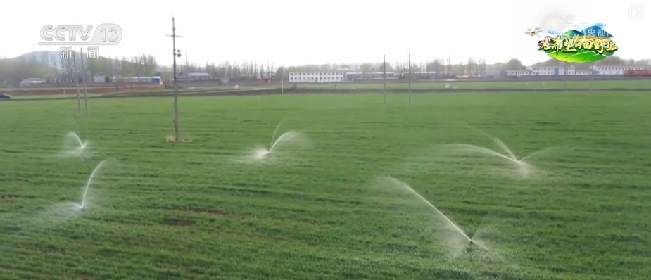 在山西晋城泽州县的高标准农田智慧农业示范区里,伸缩式自动喷灌系统正在进行春灌。这种伸缩式喷头使用时可伸出地面,不使用时则可缩至地下40厘米,不影响农机在地面的作业。这个系统将地块分为11个灌溉区,只需一次性设置,11个区域便可依次完成自动灌溉。