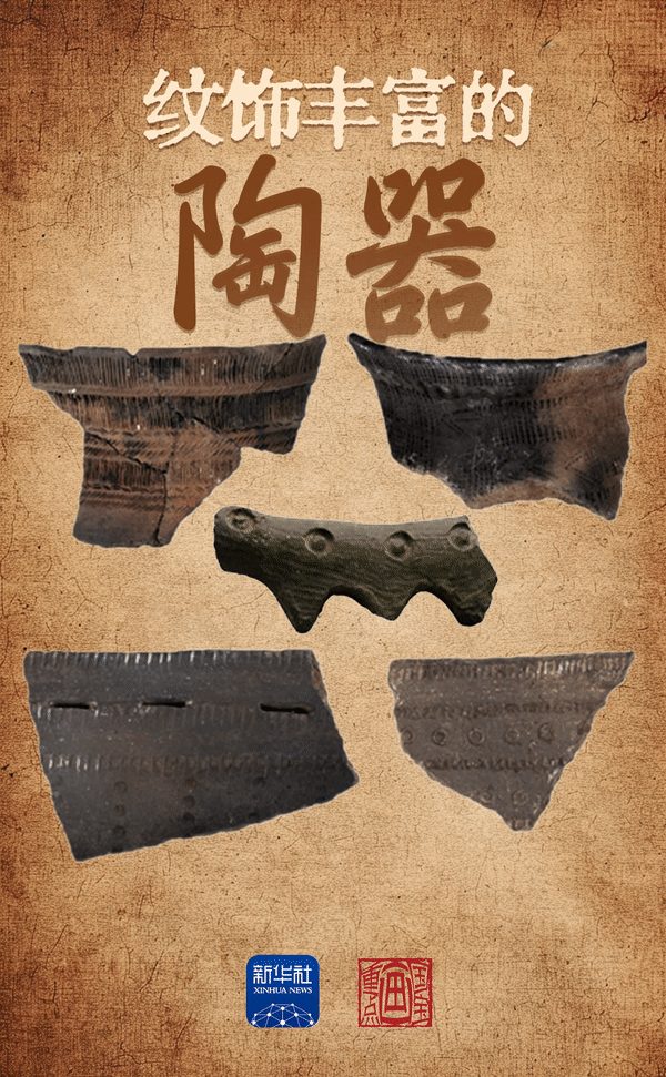 发现了各种有着纹饰的陶器碎片
