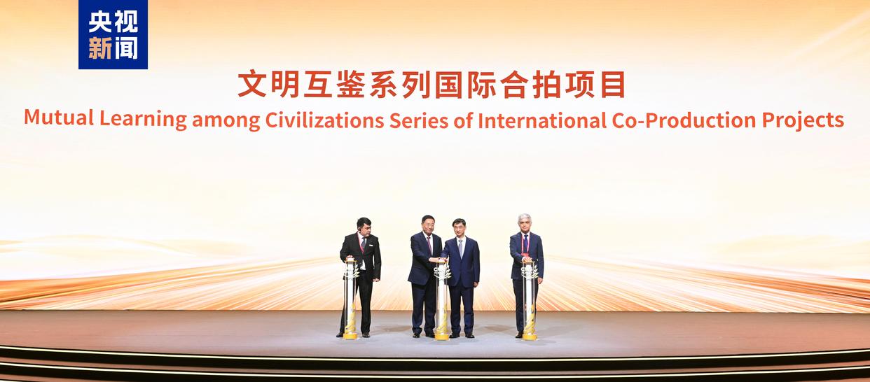 △齐竹泉、白玉刚与国际合作方代表共同发布文明互鉴系列国际合拍项目