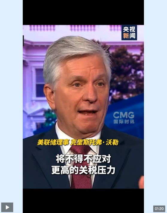 视频丨美联储理事警告:美失业率和通胀率将同时上升