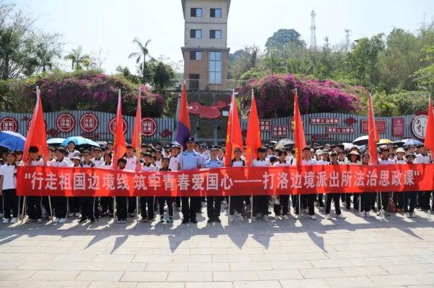 4月27日,西双版纳边境管理支队打洛边境派出所联合多部门打造的“国门社区警校”首堂“行走的思政课”在勐海县打洛镇圆满落幕。此次活动为950名师生和警民代表带来了一场沉浸式的教育体验。