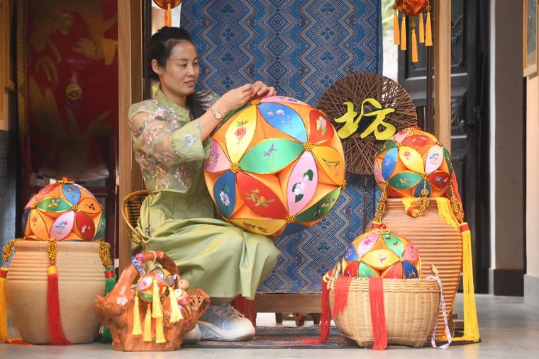 王秀芬如今已成为绣球制作技艺的市级非遗传承人。谈起绣球文化,王秀芬似乎有说不完的话。“绣球在古代是男女之间的定情信物。比如在‘三月三’,青年男女们会对唱山歌,通过抛绣球的方式传递爱意。”王秀芬捧着一个大大的绣球笑着说,“发展到今天,绣球已经成为友谊和祝福的象征。”