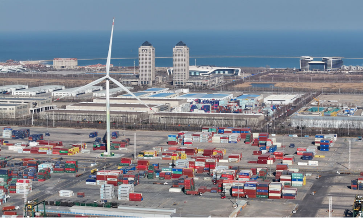 2024年3月20日拍摄的天津自贸试验区东疆片区一景(无人机照片)。新华社记者 赵子硕 摄