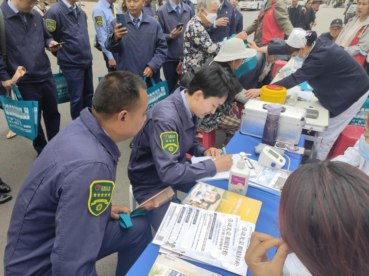社区合作爱心企业代表为公交驾驶员送上贴心的慰问品并在北市区公交车场畅行游门店门口为公交驾驶员和家属开展义诊活动。