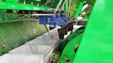 辣椒移栽机厂家技术员林晓洋告诉记者,这台机器平均每天可移栽30亩地左右。“之前半自动移栽机需要四个人在上面进行投苗、放苗,现在只需要两个人,把苗盘放在上面进行自动传输,这样可以大大节省人力,同时也可以提高我们的效率。”林晓洋说。