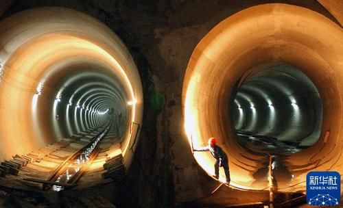 2003年12月10日,南京地铁一号线一期工程实现全线贯通,一名工人在隧道内调整照明灯光。新华社记者 徐澎 摄