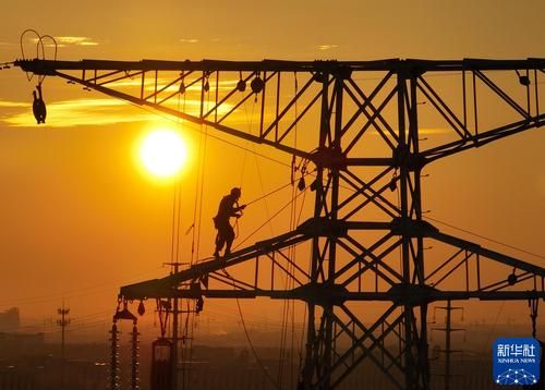 2024年8月6日,220千伏绍嘉输变电工程施工人员开展放线作业。新华社记者 翁忻旸 摄