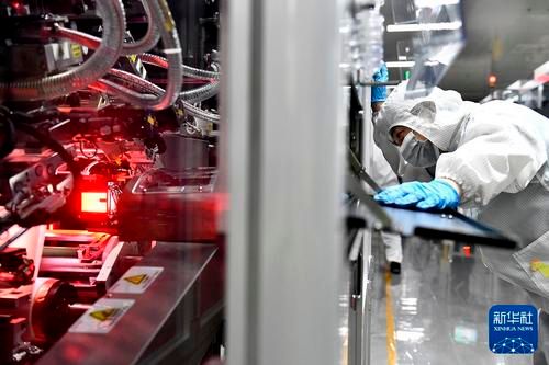 2023年6月6日,在山东一家动力电池公司,工作人员在锂电池生产线值守。新华社记者 郭绪雷 摄