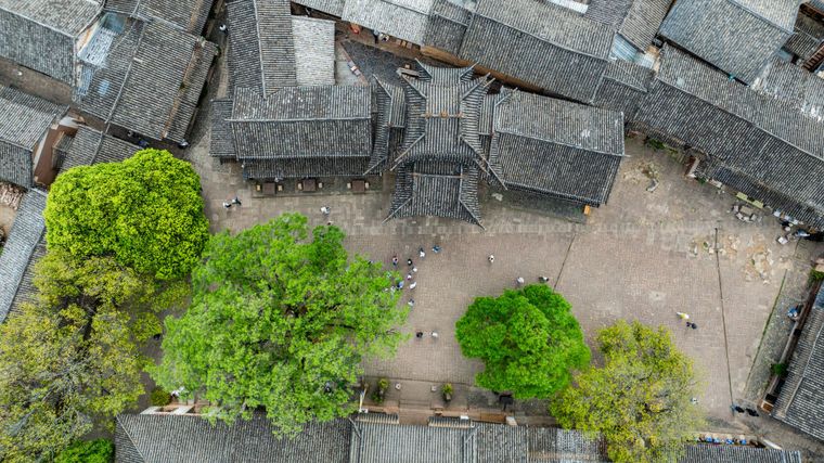 这是沙溪古镇里有着百年历史的“五星级马店”欧阳大院一景(无人机照片,4月19日摄)。新华社记者胡超 摄