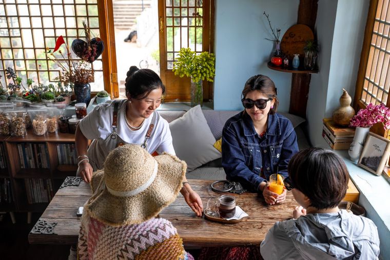 人们在云南省大理州沙溪镇北龙村先锋沙溪白族书局看书(4月20日摄)。新华社记者刘莲芬 摄