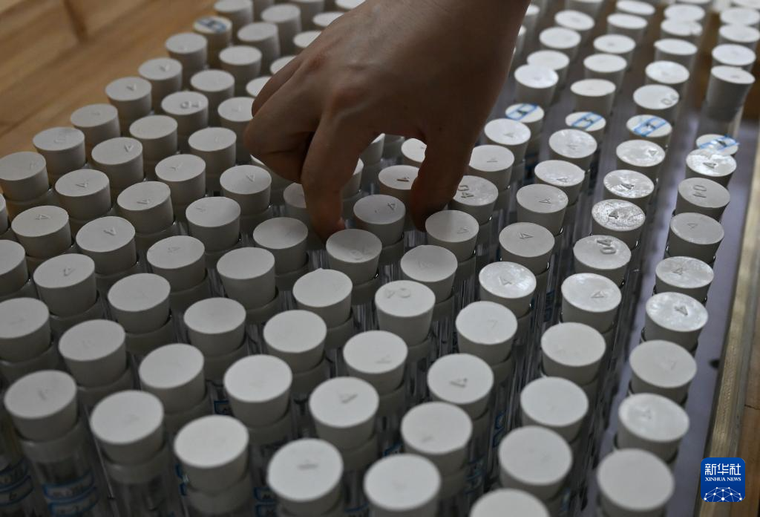 4月24日,荆州文物保护中心简牍工作室工作人员把修复的竹简保存在箱中。 新华社记者 程敏 摄