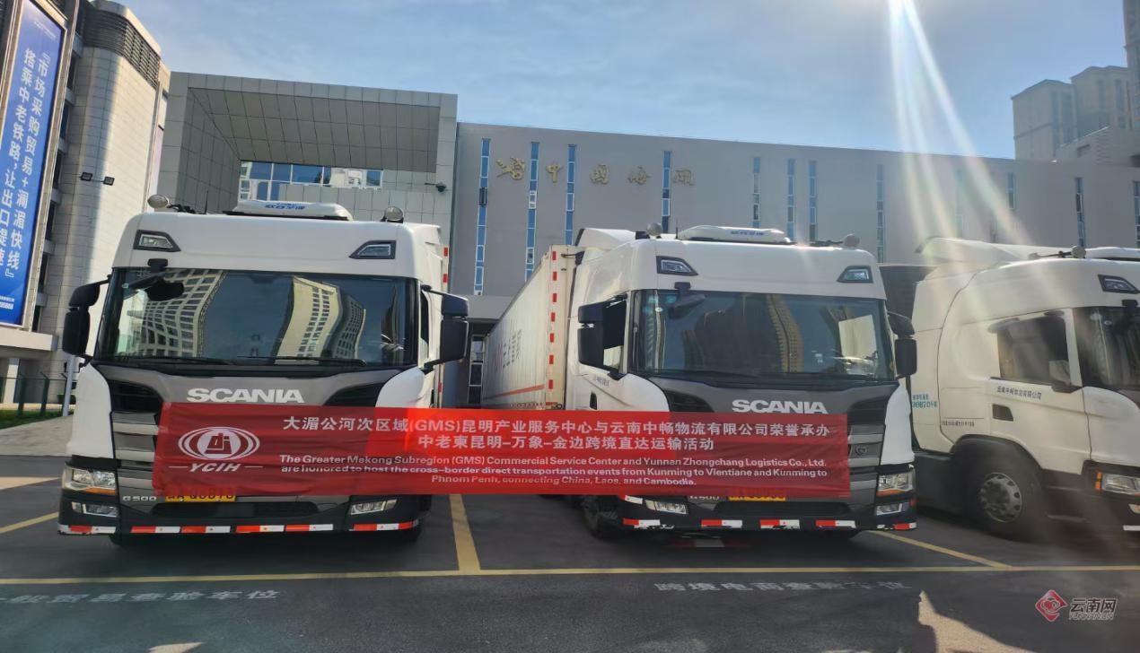 4月27日,昆明市官渡区成立的大湄公河次区域(GMS)云南产业服务中心在昆明新螺蛳湾海关查验中心举行“中老柬昆明-万象-金边跨境直达运输新线路”发车仪式。