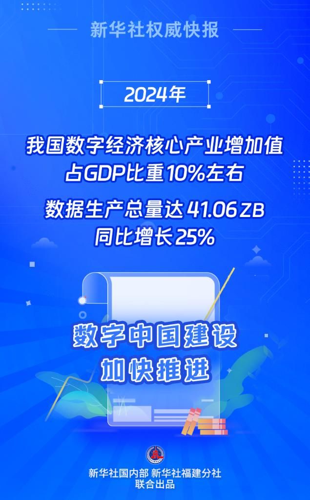 2024年,我国数据生产总量同比增长25%;数字经济核心产业增加值占GDP比重10%左右;算力总规模达到280EFLOPS,建成5G基站425.1万个……