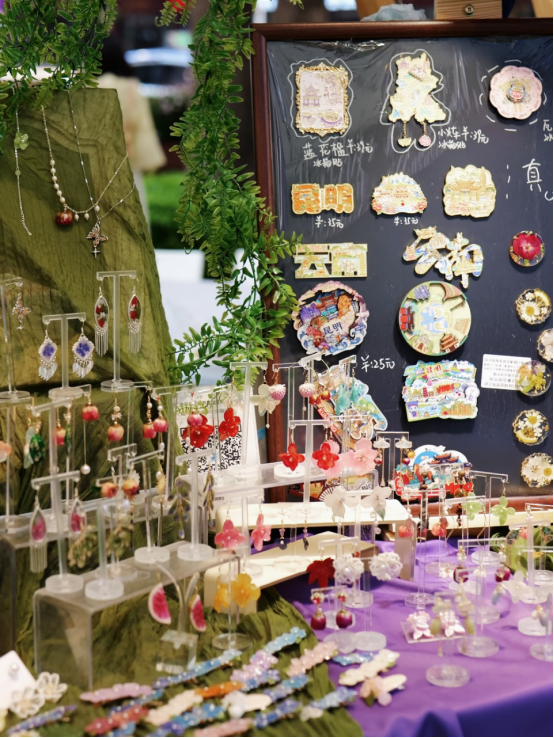 市集期间,现场设置了“花花躺平区”,让大家享受市井之中的片刻放松,而“卷不动了,就来云南躺一躺吧”的标语,更是把云南的松弛感展现到了极致。与此同时,顺城还发起“花友社群”招募,每天提供60份免费的鲜花手作活动,由花艺老师带领市民和游客亲手制作鲜花耳环和鲜花风铃,切身感受“有一种叫云南的生活”,以及“总有一朵鲜花为你而来”。