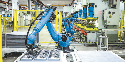 老板电器未来工厂自动化生产线上,机械臂正在作业。 |