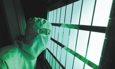 维信诺(固安)新一代显示技术(AMOLED)生产线,工程师在检验屏幕外观及显示效果。 |