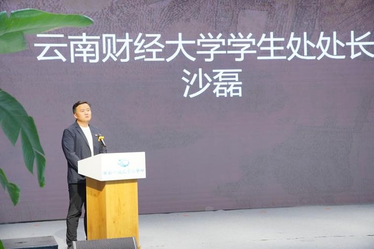 二是立足校园,擘画实践蓝图。云南财经大学学生处处长沙磊老师紧随其后发表讲话。他详细阐述了学校“以文化人、以美育人”的教育理念,提出将非遗保护纳入学生实践体系的规划,并宣布未来将增设非遗主题课程与校外采风基地,激励学生成为“传统文化的守护者与创新者”。