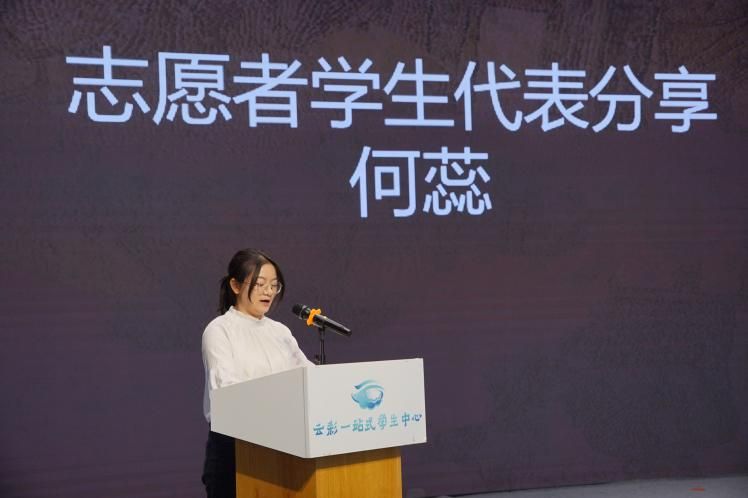 四是学子发声,传递传承热忱。志愿者学生代表何蕊登台分享参与心得。她以“从记录到热爱”为主线,讲述通过采风活动深入了解非遗技艺的故事,并呼吁同龄人“用行动赋予传统文化新的生命力”。