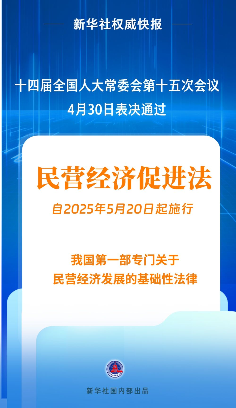 新华社权威快报|民营经济促进法出台!自今年5月20日起施行