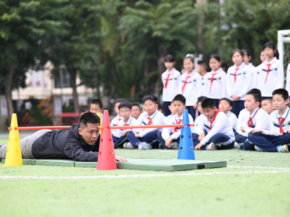 ↑“兵教师”陈翼桁在学校开展特色教学。蔡家榕 摄