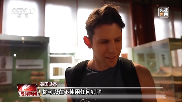 英国游客:我以前没见过这个,我认为这真的很有趣,你可以在不使用任何钉子,把东西放在一起的情况下,实现一个坚实的结构。