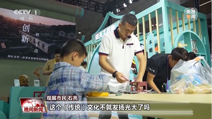 观展市民 石亮:小孩子喜欢,从小孩子开始慢慢玩儿,这个传统文化不就发扬光大了吗。