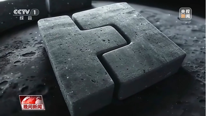国家数字建造技术创新中心 华中科技大学教授 周诚:我们看到的这两块砖呈现的是榫卯结构,有利于在未来的月球基地的建造过程中,我们采用这样的结构形式进行拼装。