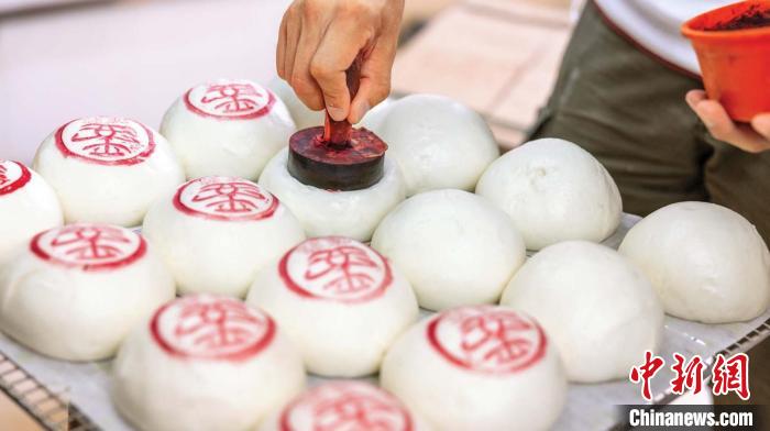 5月2日,屹立长洲岛40年的老字号饼店郭锦记第二代传人郭宇钿接受中新社记者采访时表示,近年来越来越多旅客对长洲岛文化产生兴趣,报名参加平安包工作坊。图为工作坊制作平安包。(受访者供图)