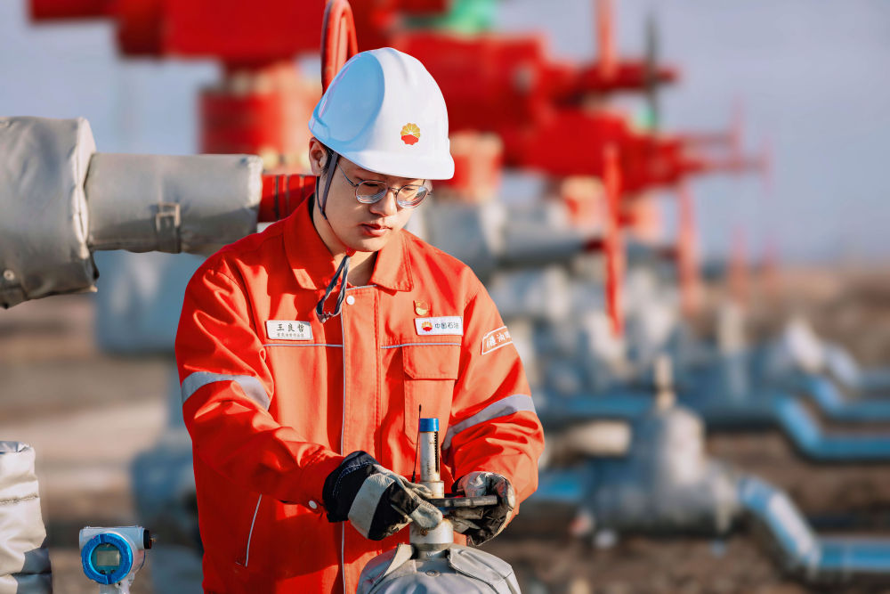 王良哲在吉庆油田作业区摸排新投产水平井的生产状况(2025年4月15日摄)。新华社发
