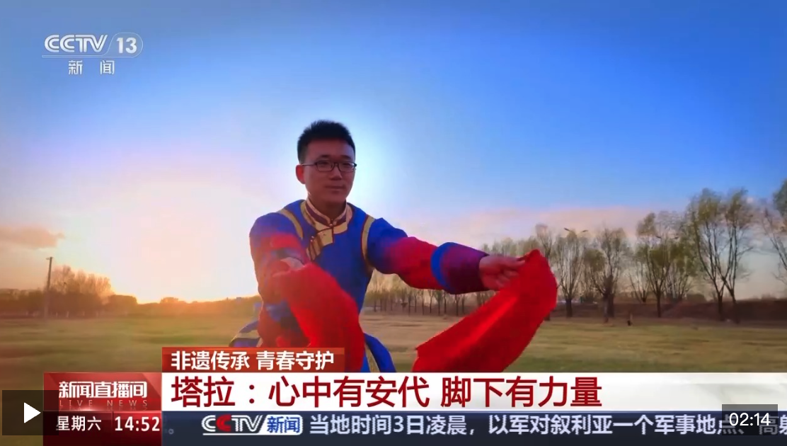 作为安代舞最年轻的传承人,34岁的塔拉从腼腆少年成长为草原文化的传播者,他将400年历史的安代舞带进校园、融入课间操,更走进田间地头,让这项承载着北疆人民生命热情的舞蹈跃动出新的韵律。