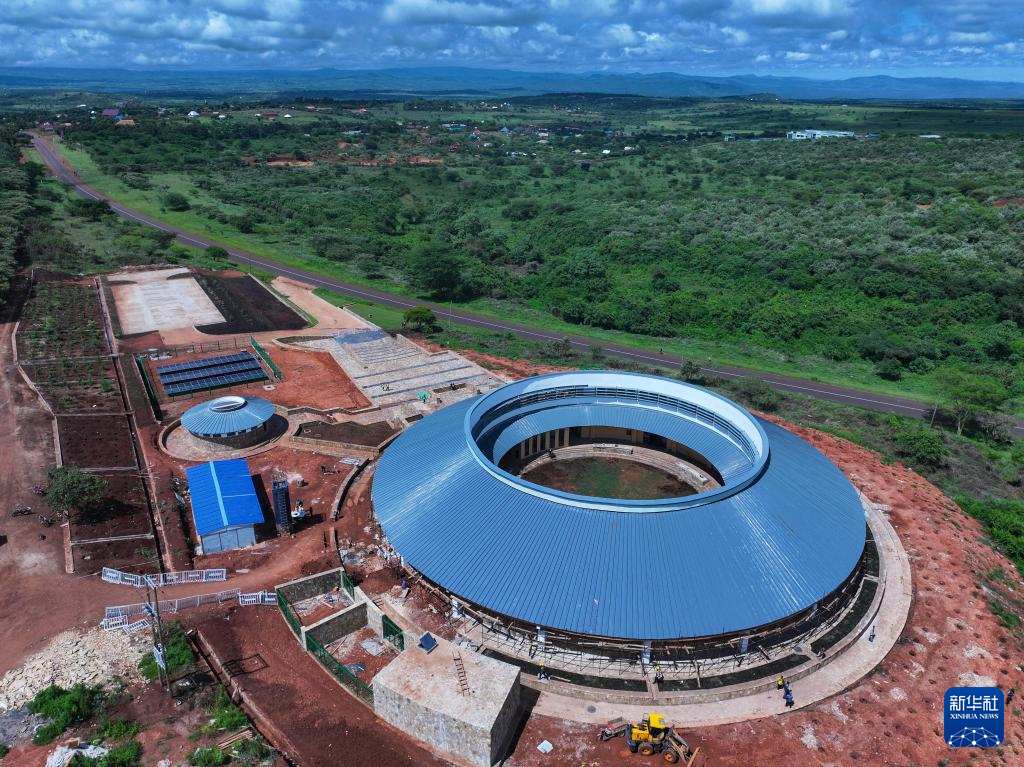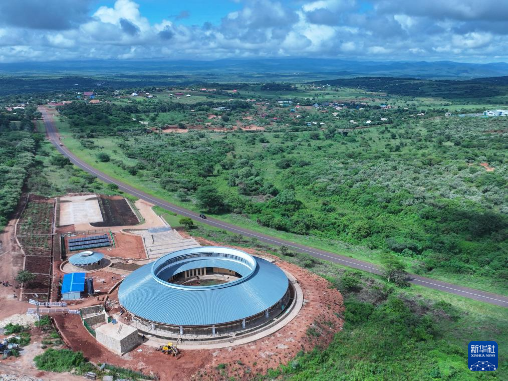 这是4月26日在坦桑尼亚阿鲁沙拍摄的恩戈罗恩戈罗-伦盖地质公园博物馆施工现场(无人机照片)。新华社记者 李亚辉 摄